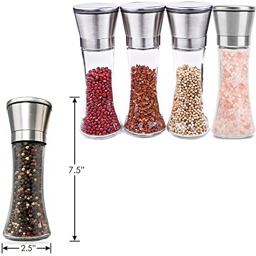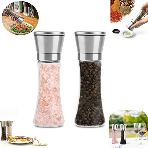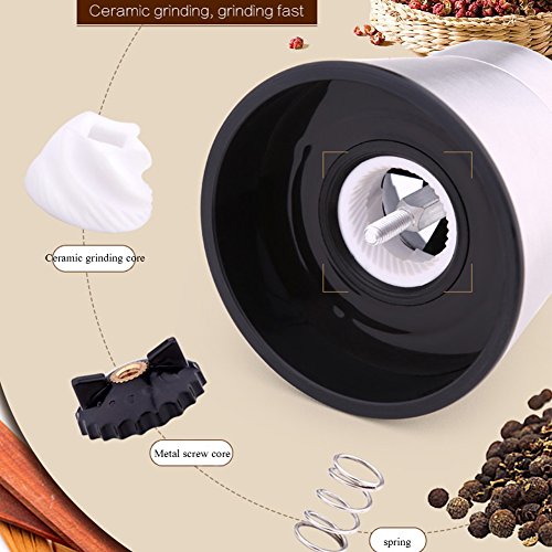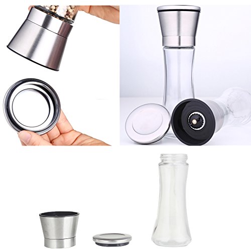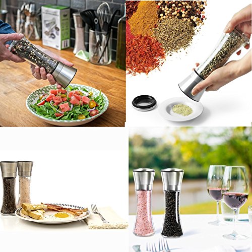 ✔[Top Quality & Durability]: This Salt and Pepper Grinder is made of 304 food-grade stainless steel, durable acrylic glass and non-corrosive ceramic grinding core, top material guarantees great durability.