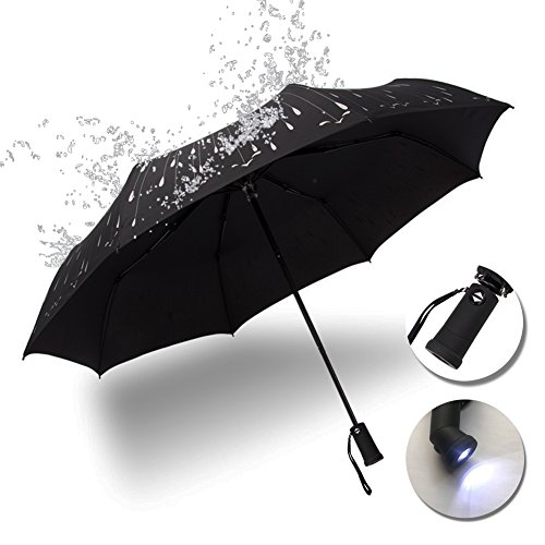 -. Feature : Automatic Opening and Closing: This automatic umbrella has an automatic opening and automatic closing mechanism, so you simply press the button on the handle to unfold and fold the canopy. / Unique LED Design:The lower half of the handle design has a 180 degree rotation of the LED light source, when you turn the handle the second half, the light will follow the front of the ground, let you see the road to avoid annoying puddles Obstacles and more, / Strong and Lightweight:60 MPH windproof strong sturdy umbrella with strong metal frame,in order to greater stability in the wind.Weighs less than 1 pound and can be folded to 12.5 inches,small enough to store briefcase,backpack,lage and more. / Waterproof and Quick-Drying and Protect Against UV Radiation:DuPont Teflon technology ensures water resistance to shield you from rain or snow, just a light will be able to remove the raindrops, ready to be packed into the bag. / Worry-Free Service: If your umbrella out of trouble, we will give you a 100% free or full refund, do not need to return! (Lifetime warranty applies only to items purchased directly from Able goal)