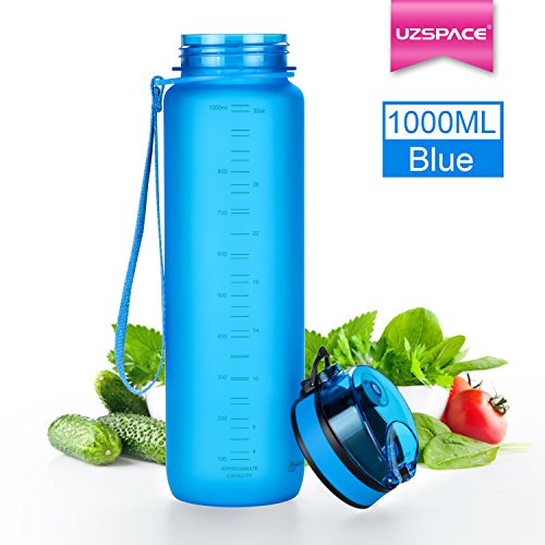 UZSPACE Sports Water Bottle 32oz-1L Large Flip Top Leak Proof Lid with One Click Open - Non-Toxic BPA Free & Eco-Friendly Tritan Co-Polyester Plastic