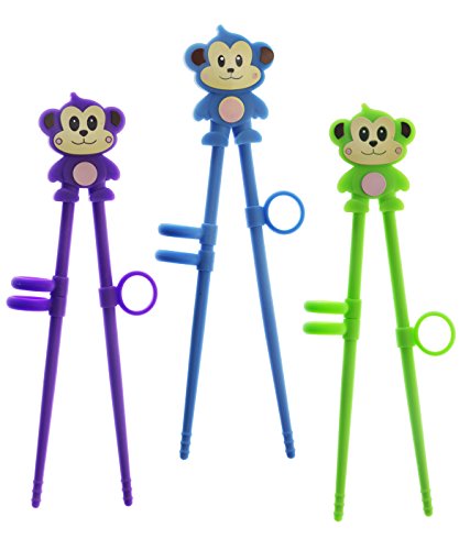 Kids Training Chopsticks by Silicone Valley for Beginners Kids Teens or Adults - set of 3 Silicone Blue, Green, Purple