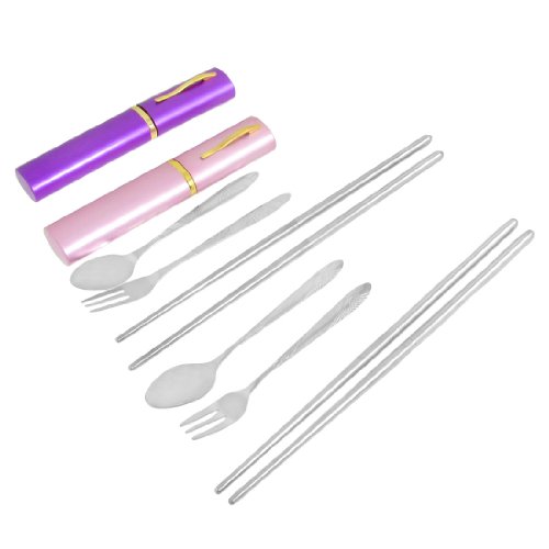 uxcell® Stainless Steel Spoon Chopsticks Fork 2 Sets 3 in 1 w Case