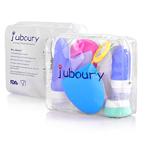 - ✔Refillable & Squeezable-- Juboury silicone travel containers are soft and easy to squeeze. The wide opening makes it easy to fill them.Works great with low or medium viscosity fluids such as Shampoo, Conditioner, Body Wash, Sunscreen and Lotions.