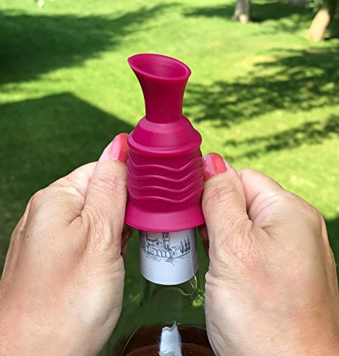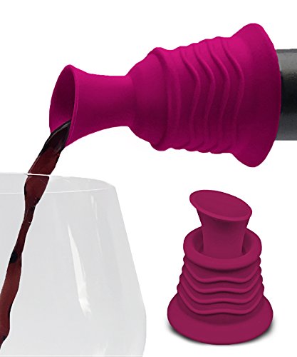 -. Feature : GREAT FOR A CROWD OR A PARTY OF TWO Pouring and preserving wine just got easier with this silicone gadget that has dual use. Slip it over an open bottle of wine to POUR MORE EASILY, then gently press it down to create a DRIP PROOF SEAL. It really is that easy. / POURER BECOMES AN AMAZING WINE BOTTLE STOPPER Ever get to the end of the evening and discover you have an unfinished bottle? Simply press down and place the bottle in the fridge, you can even lay it safely on it's side due to the drip proof seal. / PERFECT FOR OUTDOOR CONCERTS AND PICNICS Nothing is worse at a picnic or at the beach than tipping a bottle of wine over and having it spill all over the blanket. Problem solved. This two in one gadget creates a spill proof seal that will keep your wine happily contained. It also keeps out pests like fruit flies from doing the backstroke in your bottle. / WORKS ON ANY SIZE BOTTLE The high quality food grade silicone (BPA FREE OF COURSE) is flexible to fit any wine bottle. Just slide it down over the neck until it is slightly snug. If you try to pour and no wine appears, it means you have slid it down a bit too far, twist it up just a bit and you'll have vino flowing in your glass in no time. / SEAL THE DEAL Like all our products, if you are not absolutely thrilled with your purchase, return it for a hassle free refund. We strive for 100% customer satisfaction and want to add you to our list of thousands of happy customers, so give our combo stopper and pourer a try today!