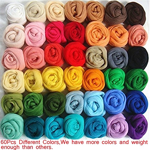 - (1) 60 Pcs assorted colors, meets what you need for DIY different styles for needle felting and wet felting.