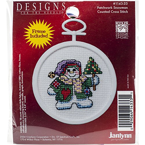 Patchwork Snowman Mini Counted Cross Stitch Kit-2.5" Round 18 Count