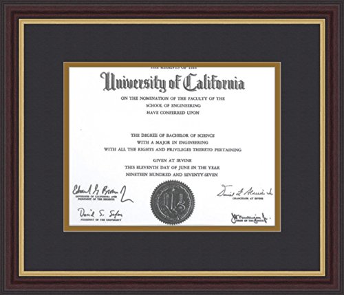 ArtToFrames Diploma-721-89/596-0066-83120-Ymah Diploma 1 Opening, 8.5x11, Mahogany and Gold Slope Frame