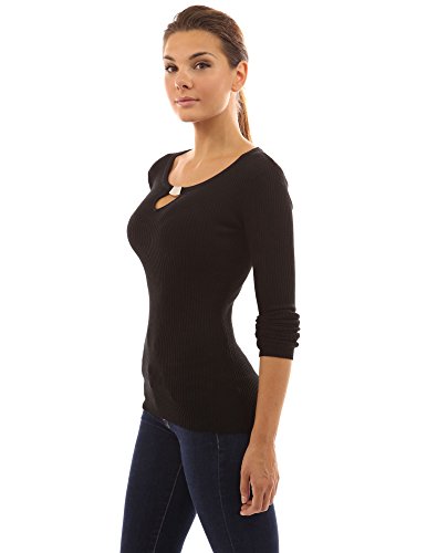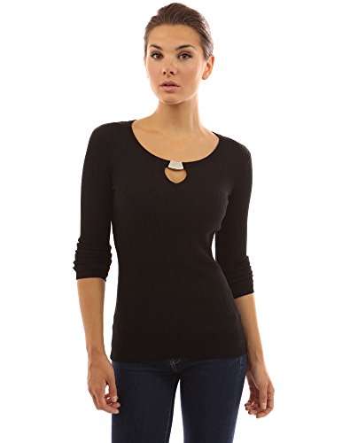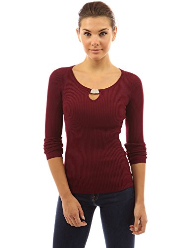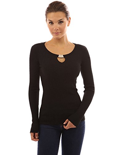 Product DescriptionPattyBoutik Scoop Neck Keyhole Long Sleeve Ribbed Sweater Top. Model in pictures is 5 feet 8 inches (173cm) tall wearing size S.0
