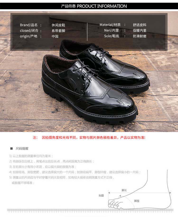 英伦男士尖头皮鞋漆皮亮面松糕板鞋韩版休闲鞋夜店发型师加绒棉鞋