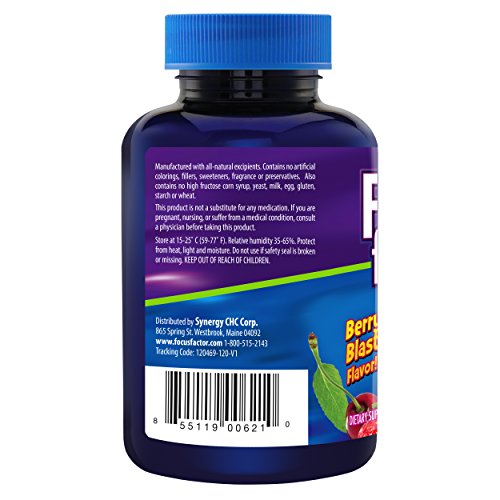 FOCUS factor Kids Extra Strength - Specially Formulated for Kids with Neuro-Nutrients, Essential Vitamins and More in a Delicious Berry Blast Chewable, 120 Count