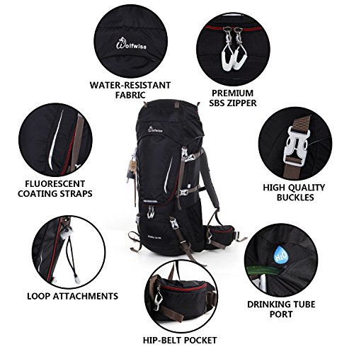 ✪ IMPECCABLE CONSTRUCTIONS - The WolfWise Hiking Backpack is expertly crafted with anti-tear, anti-wear, and water resistant nylon to ensure ultimate durability under the most demanding tasks. Premium rain cover is also implemented for protection against the elements