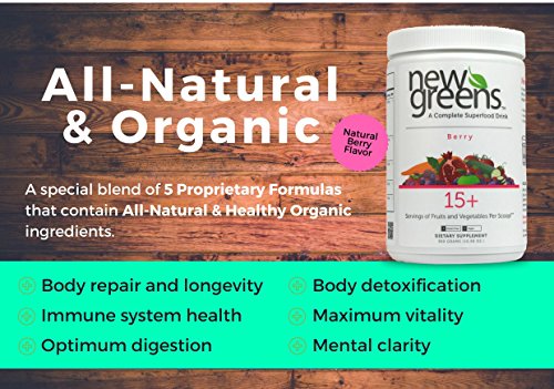 54 ACTIVE NUTRIENT BOOST with 3X more powerful than the leading "Green Superfood" brands! Every scoop has over 54 individual antioxidants, enzymes and key botanical ingredients. NewGreens Berry is an herbal green superfood powder designed to provide the body with an unprecedented antioxidant punch and adaptogenic herbs known to increase stamina and physical energy also containing fiber and healing enzymes to help detoxify the body.