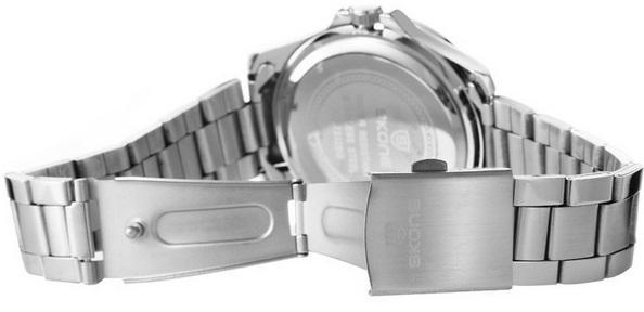 | High Quality Material Bagian strap Jam tangan waterproof SKONE 7232 terbuat dari bahan stainless yang berkualitas、 lentur dan tahan untuk penggunaan dalam jangka waktu lama. Pada bagian belakang、 kap penutup terbuat dari bahan material stainless anti air.