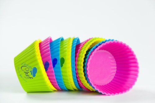 Here are the benefits.. - 24 re-useable cups that will last a lifetime! - No need for a muffin tray, just place your baking cups straight onto a baking sheet! - 4 beautiful colors you'll love! - FDA approved and BPA free silicone! - Standard Size 2.3/4 inch diameter x 1.1/4 inch tall baking cups! - Oven, microwave and dishwasher safe. 0 |