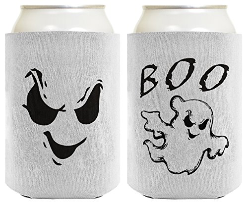 Funny Beer Coolie Boo Cute Ghost and Ghost Face Halloween 2 Pack Can Coolies White