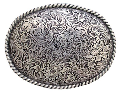 Product Descriptioncately detailed Floral Engraved pattern on the sterling plate rope edged belt buckle. Buckle is in Ranger, Rodeo Style.0