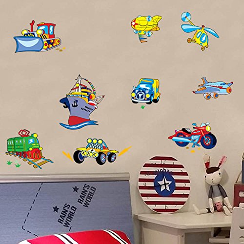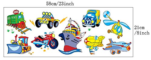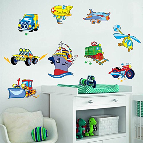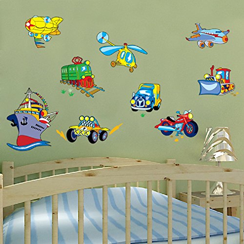 -. Title : Amaonm Fashion Hote Transportation Wall Decals Removable DIY Planes, Trains, Automobiles, Motorcycles, Boats, Bulldozers, Helicopters, Easy Peel and Stick Nursery Room Wall art Decor Sticker