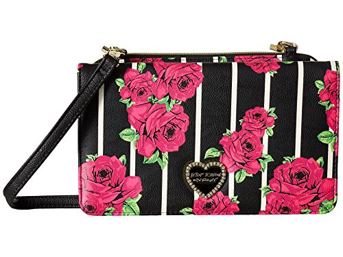 Betsey Johnson Women's Bow Crossbody Black Floral Crossbody Bag