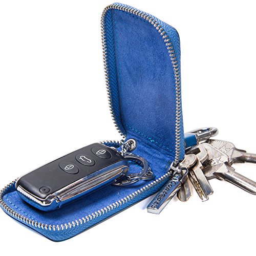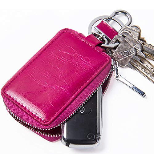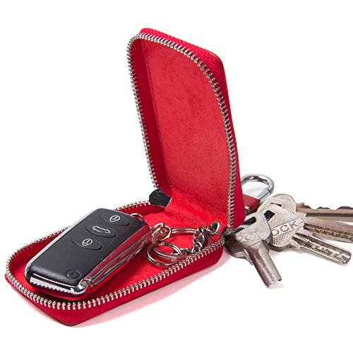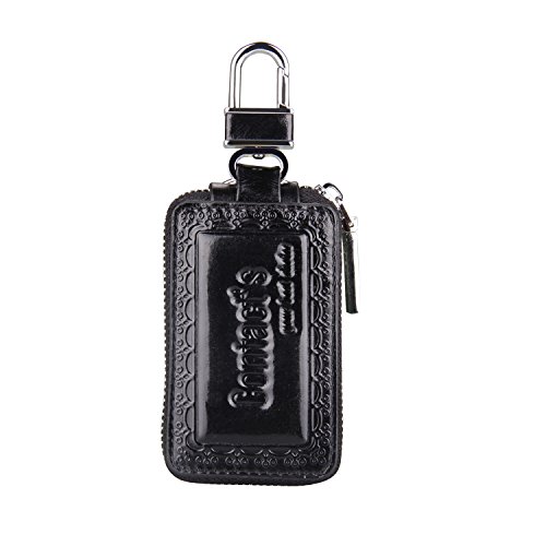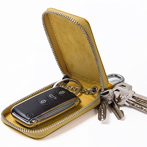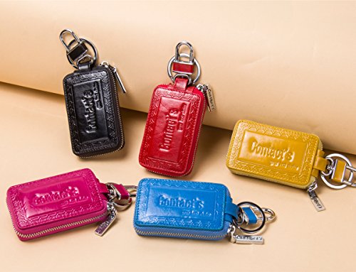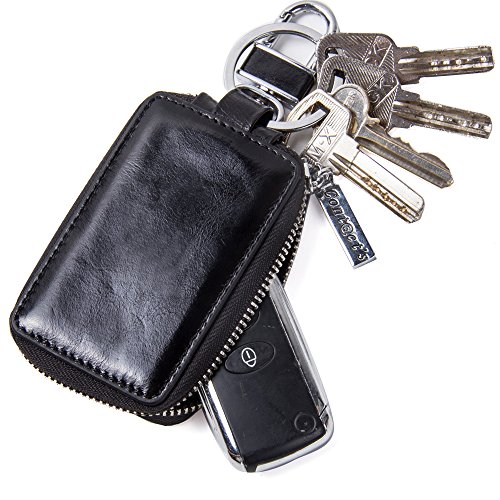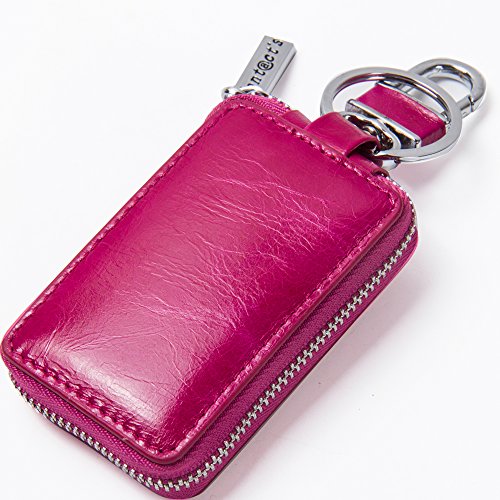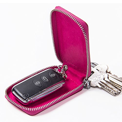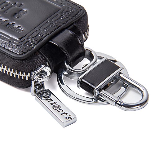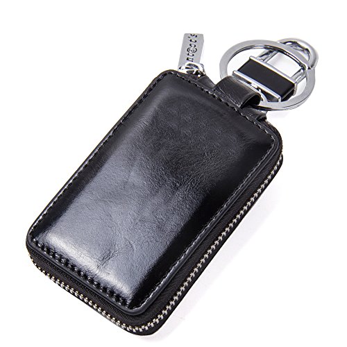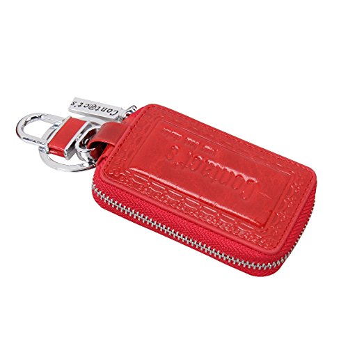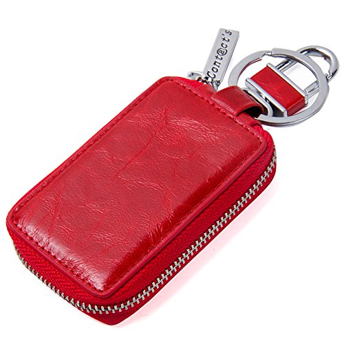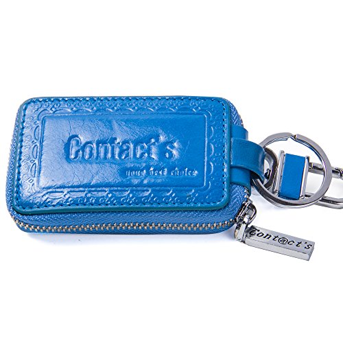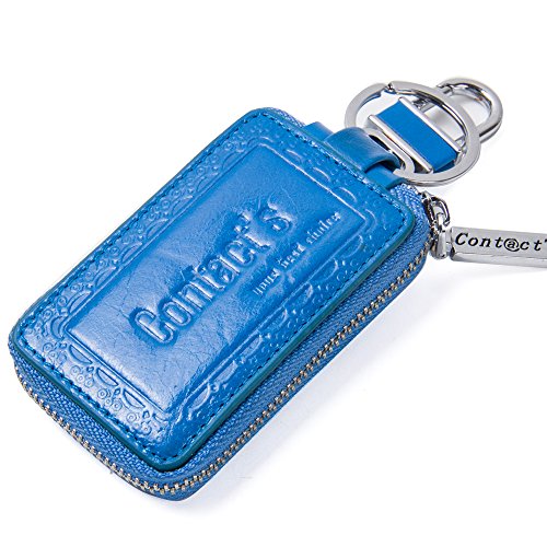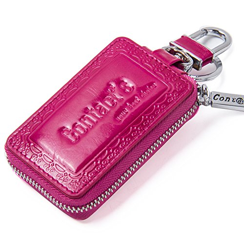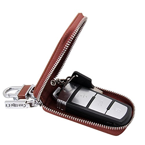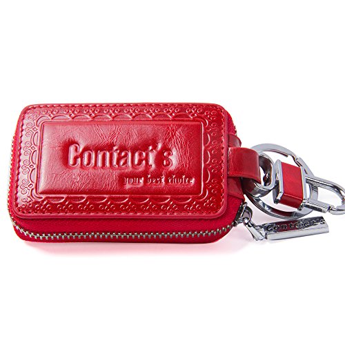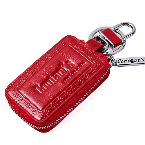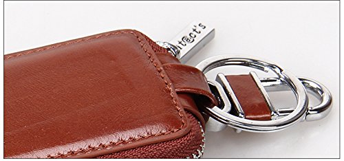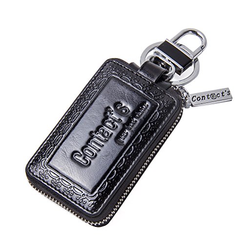 Contacts Genuine Leather Car Key Wallet Key Holder Bag Zipper Case Key Ring