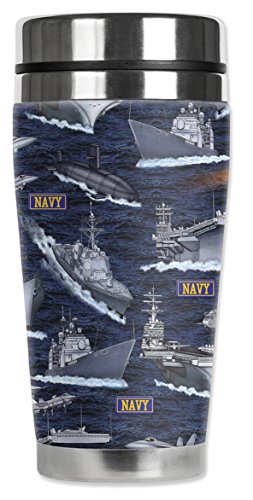 Mugzie 1024-MAX "Navy" Stainless Steel Travel Mug with Insulated Wetsuit Cover, 20 oz, Black