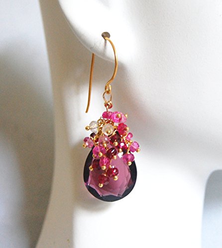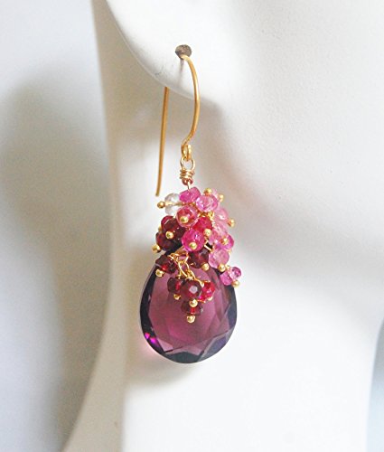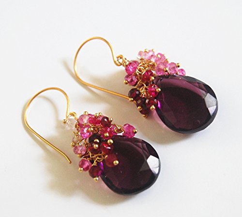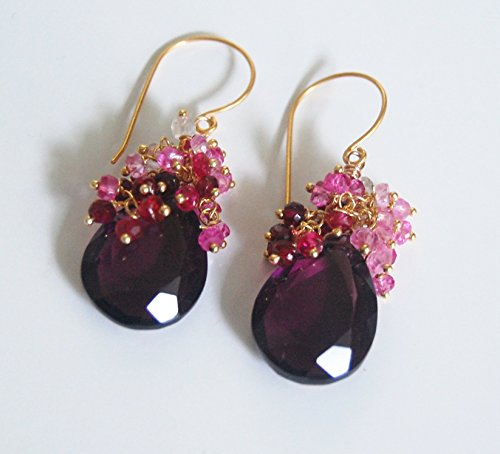 -. Title : Plum Quartz And Genuine Shaded Ruby Cluster Dangle Drop Earrings- July Birthstone Earrings - Wedding Jewelry- Wedding Accessories