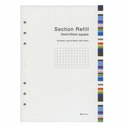 -. Feature : UNITED BEES A5 size 6-hole personal organizer refill / 5mm graph-ruled / A5 size, 6-hole / 50 sheets / external dimensions: 5.8 inches (width) x 8.3 inches (height)