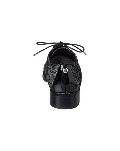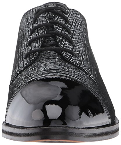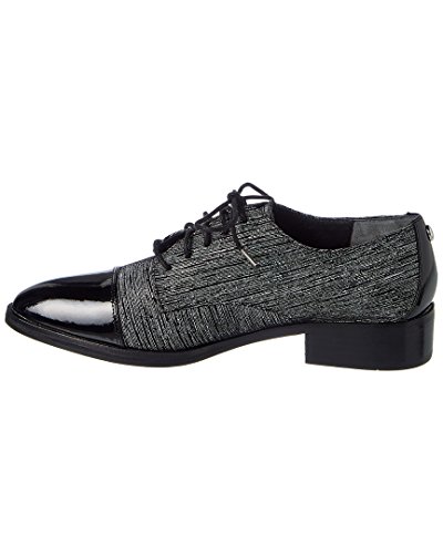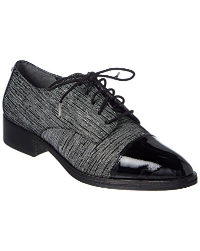 Studio : Donald J Pliner Publisher : Donald J Pliner Binding : Apparel Product Description Upper is a combination of black and white streak suede , and patent leather (cap toe). a classic oxford silhouette with modern tailoring and a genderless feel. stacked leather heel. outsole is leather with rubber pod insert. 0