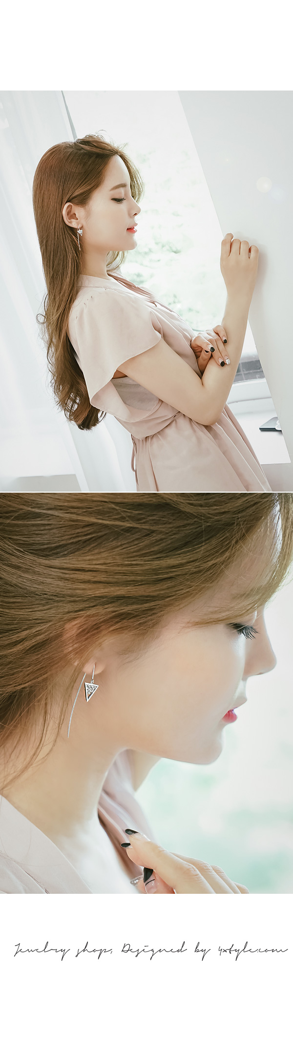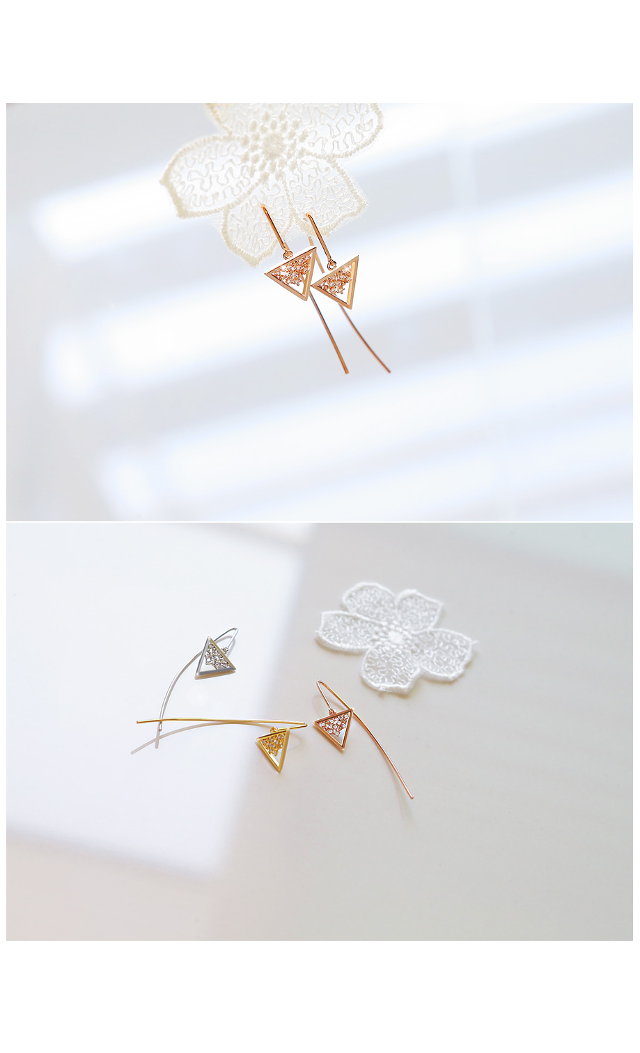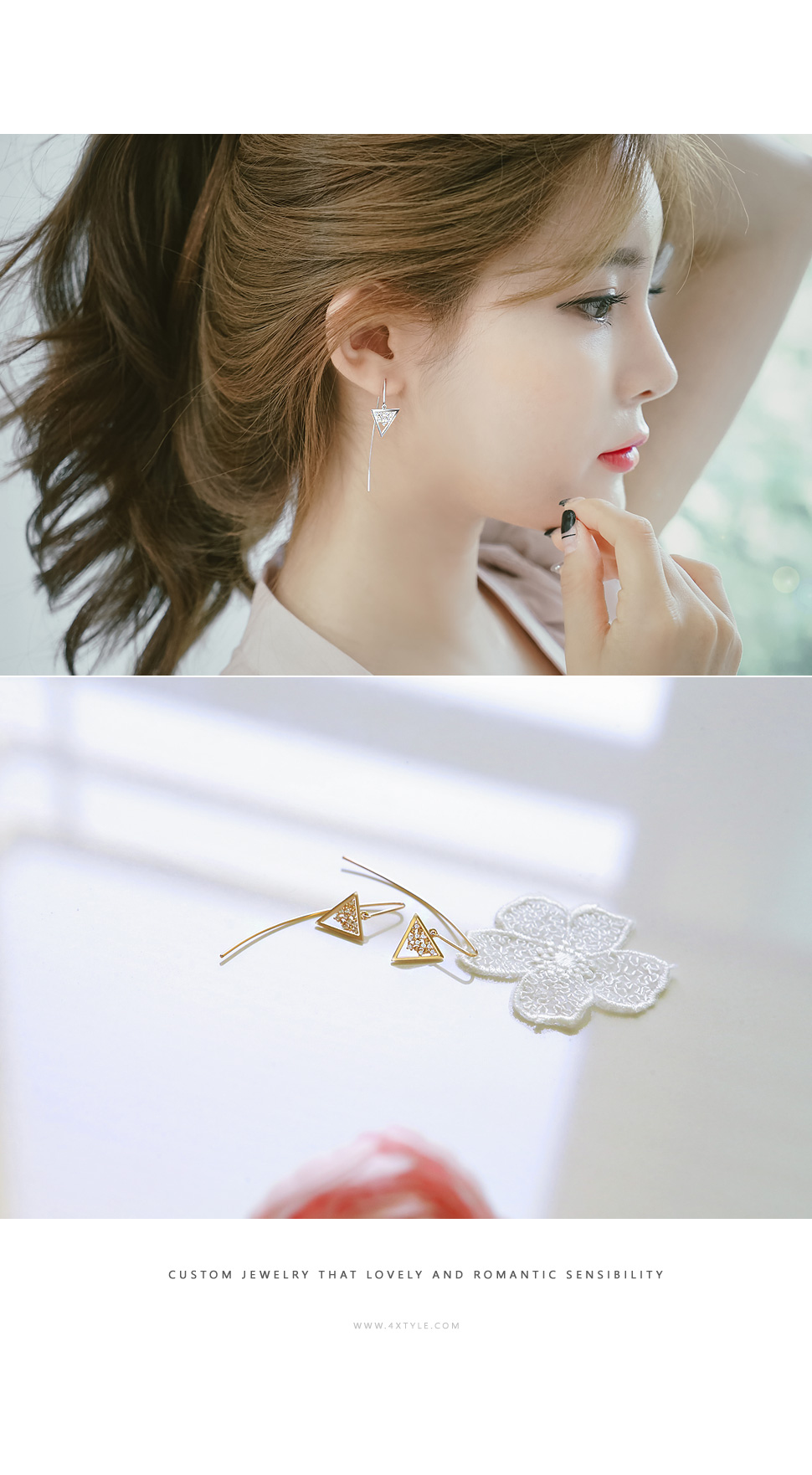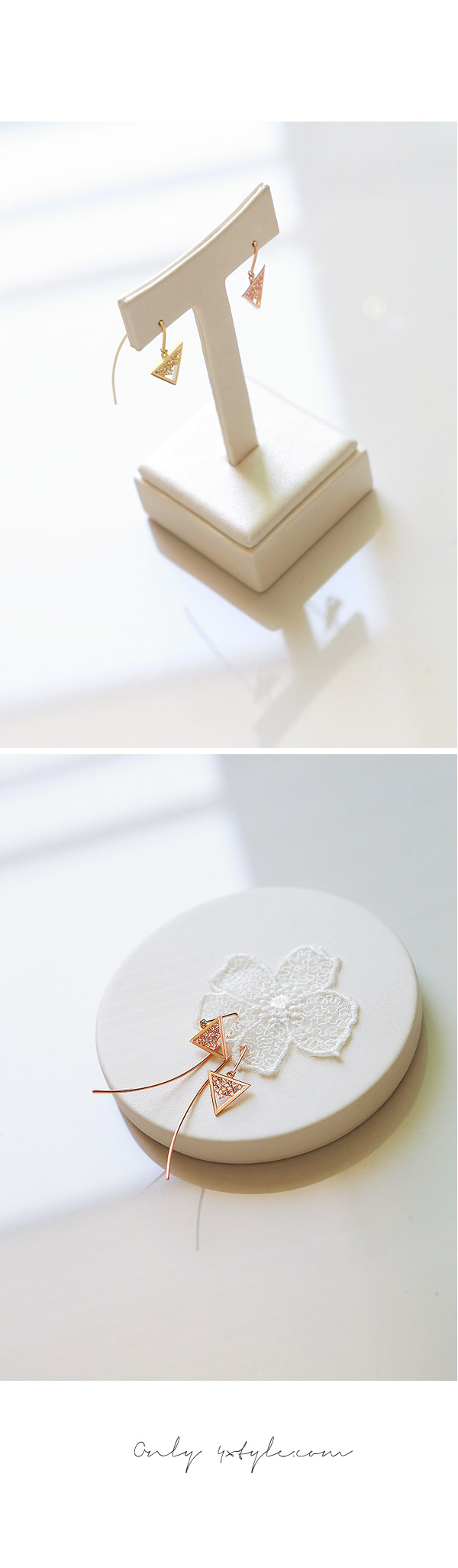 롱한 길이감에 삼각형 모양의 팬던트로 디자인되어 세련된