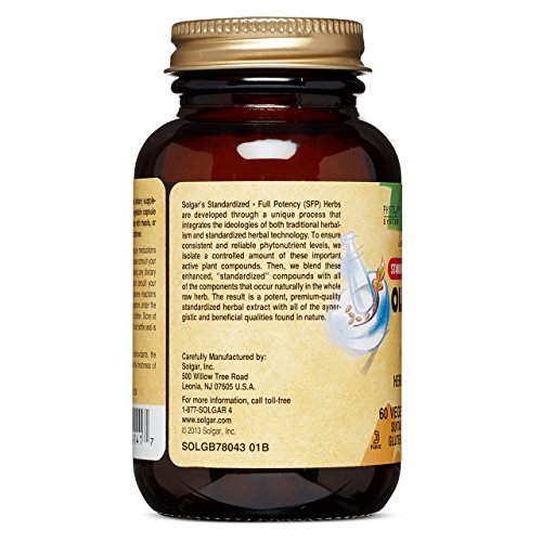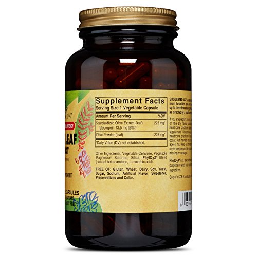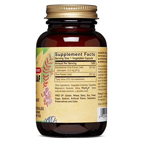 -. Feature : STANDARDIZED FULL POTENCY: Solgar's Standardized Full Potency herbs are uniquely developed through a unique process that integrates the ideologies of both traditional herbalism as well as standardized herbal technology / RELIABLE AND CONSISTENT: To ensure reliable and consistent phytonutrient levels, Solgar isolates a controlled amount of these important active plant compounds. Then these enhanced, "standardized" compounds get blended with all the naturally occurring components found in the whole root / OLIVE LEAF EXTRACT: Olive Leaf extract supports the overall wellness of the body by providing it with powerful antioxidants as well as other properties that aide the immune system. / PREMIUM RESULT: The result of all these processes is a potent, premium-quality standardized herbal extract with all the beneficial and synergistic qualities found in nature / SUITABLE FOR VEGANS: All vegetable capsules are non-GMO and certified gluten free. They are also free of gluten, wheat, dairy, soy, yeast, sugar, sodium, artificial flavors, sweeteners, preservatives and colors