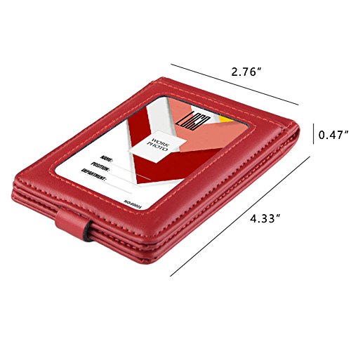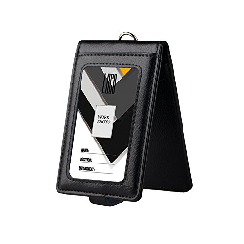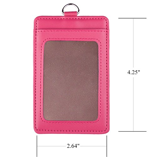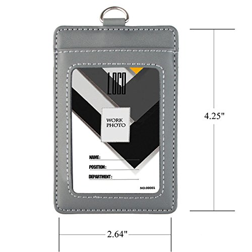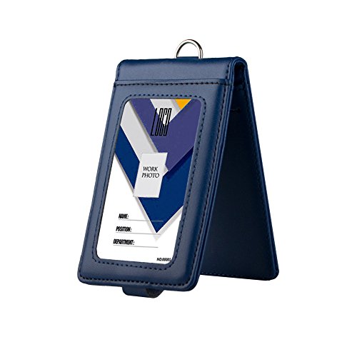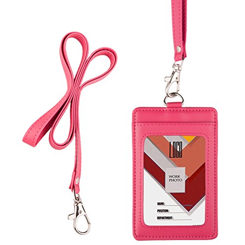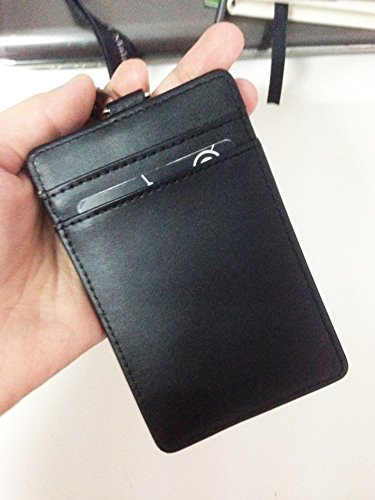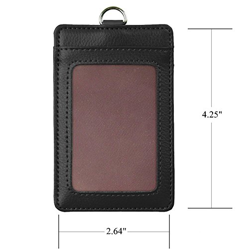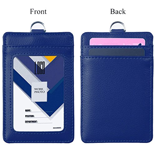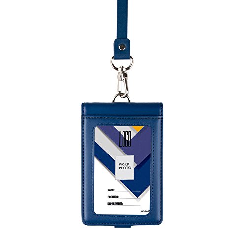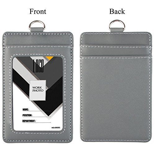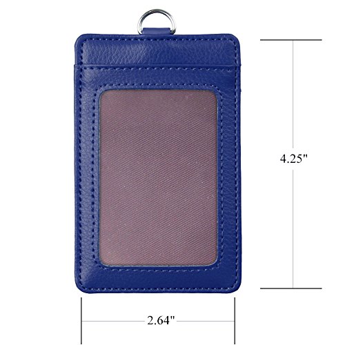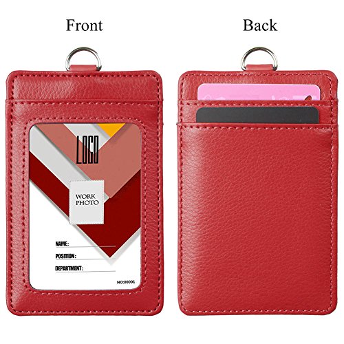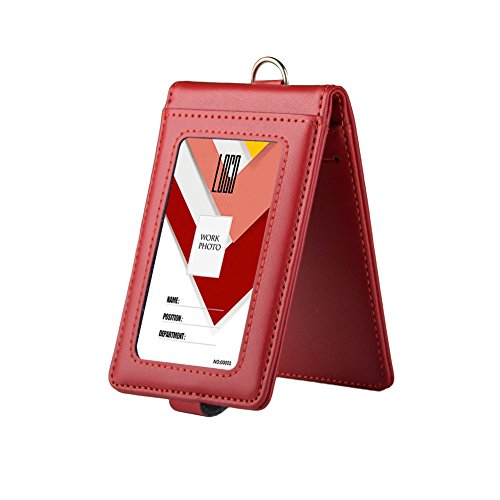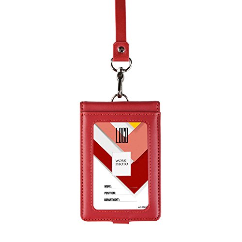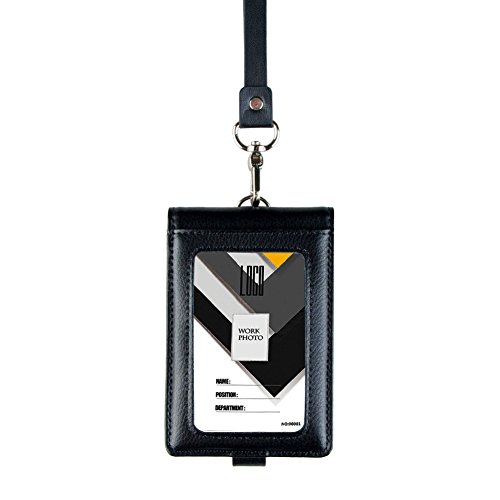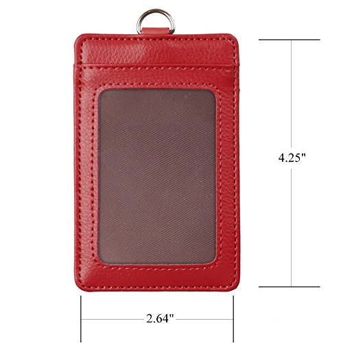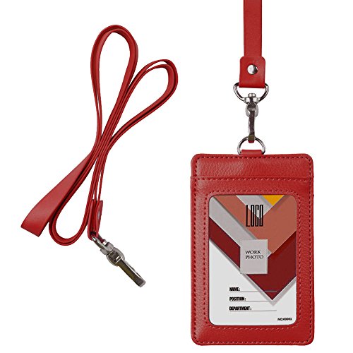 | Indressme 2-Sided Vertical Genuine Leather ID Badge Holder with Lanyard |
