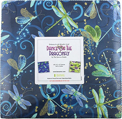 Benartex DANCE OF THE DRAGONFLY 10-inch Precut Squares Cotton Fabric Quilting Assortment Layer Cake