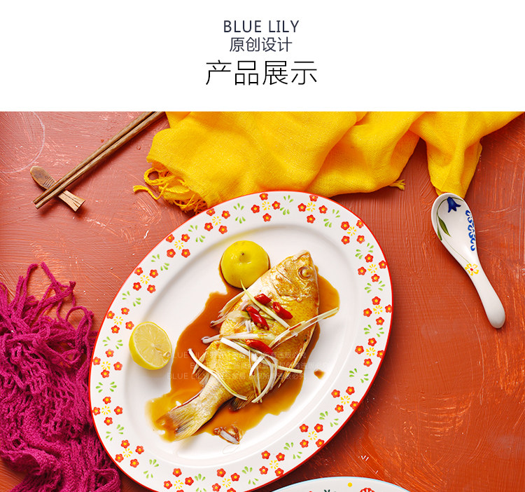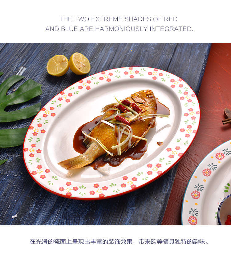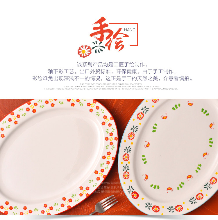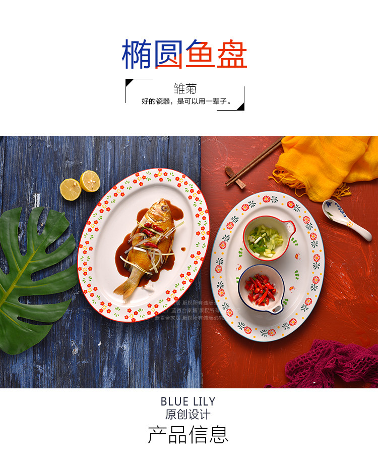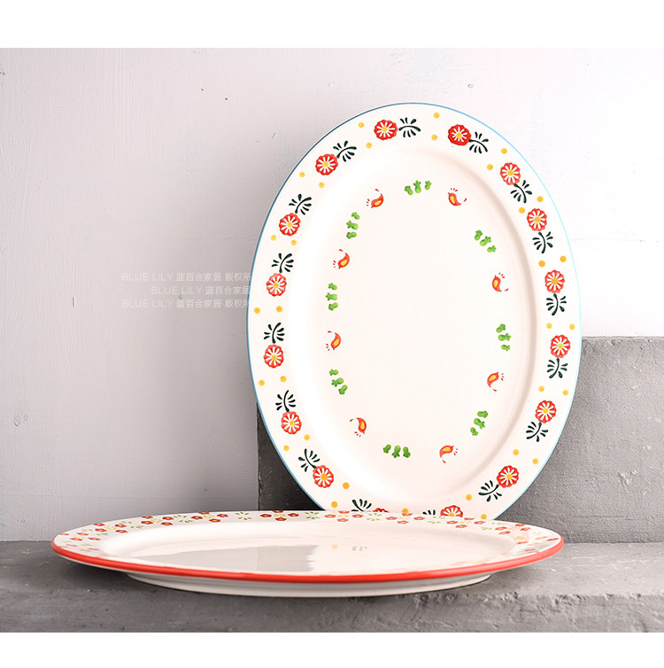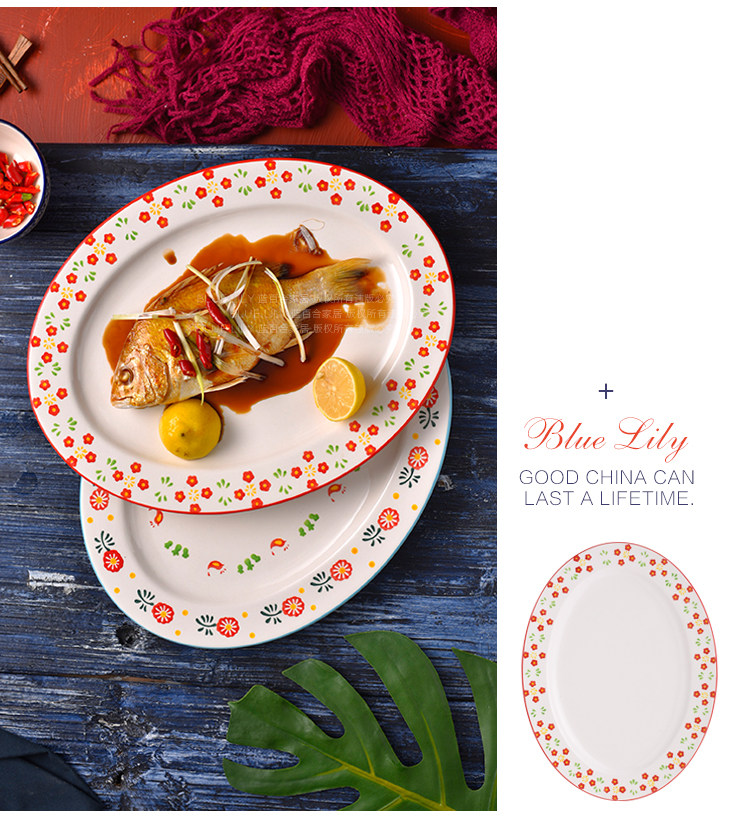 日本进口超大号椭圆鱼盘西餐平盘家用炒菜盘创意大号托盘牛排盘子