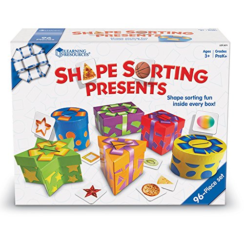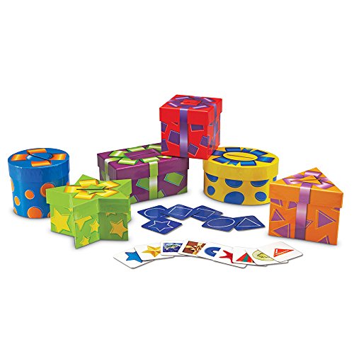 Children build recognition, vocabulary, and early math skills by sorting the photo cards into the uniquely shaped gift boxes. Set includes 6 boxes, 9 self-checking cards, and activity guide. Meets the Common Core State Standards for Geometry. For kids 3 and up.