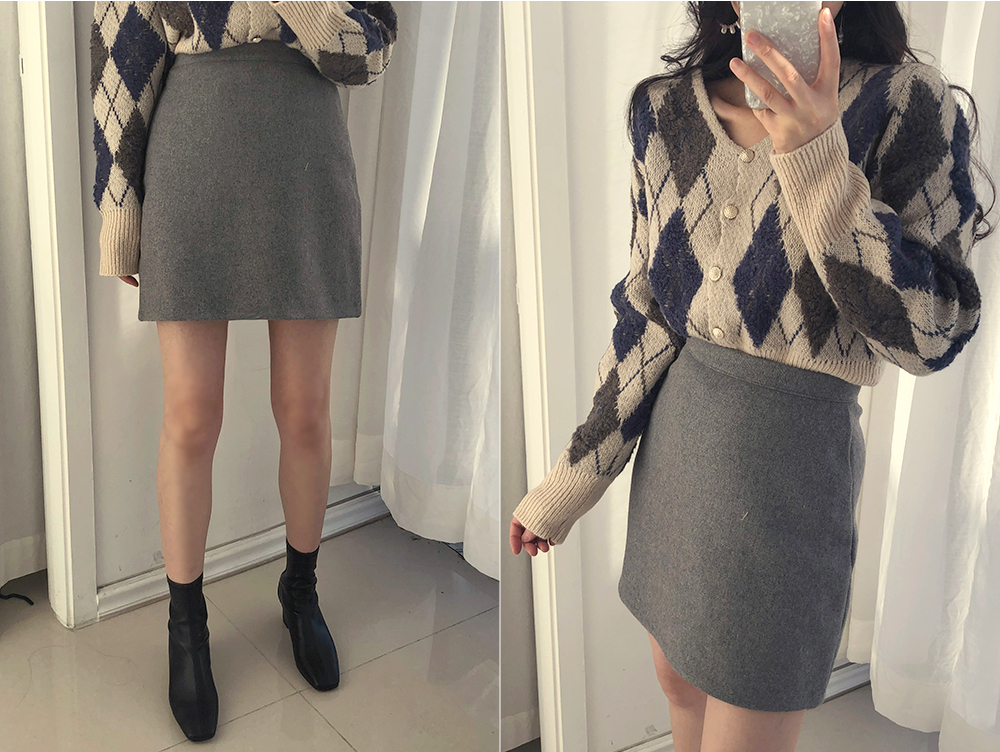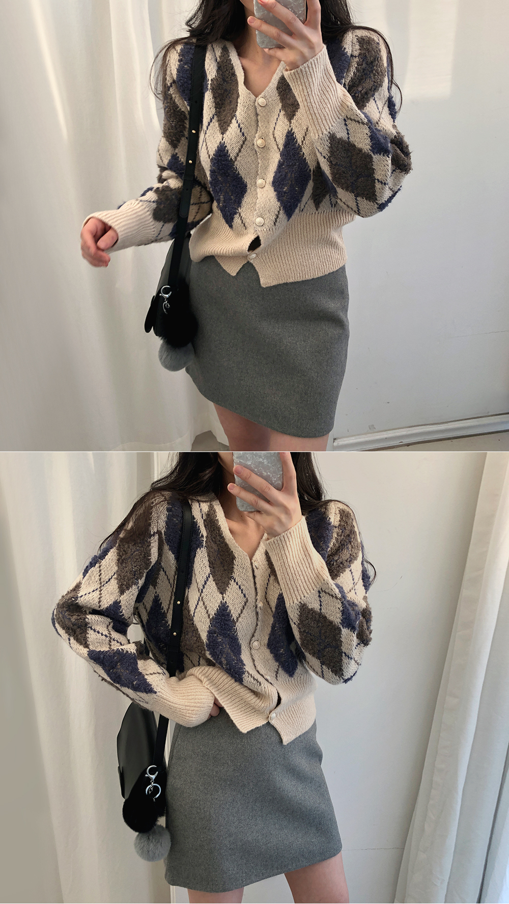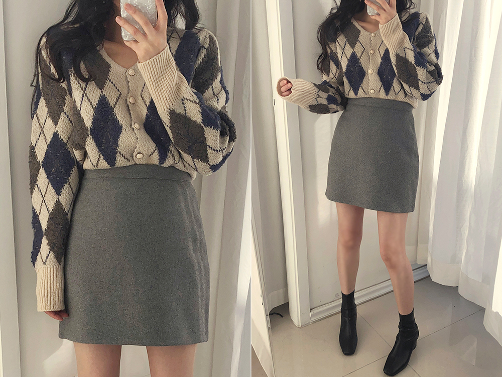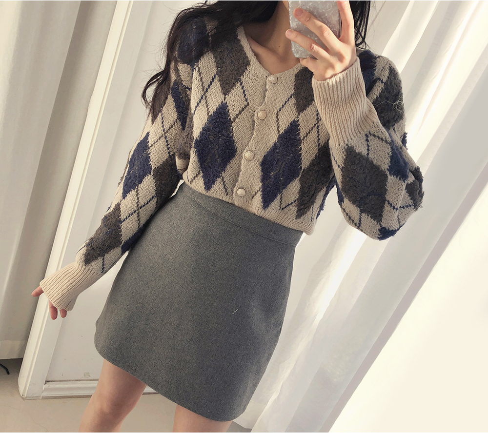 미니 아가일 브이 넥 니트 가디건