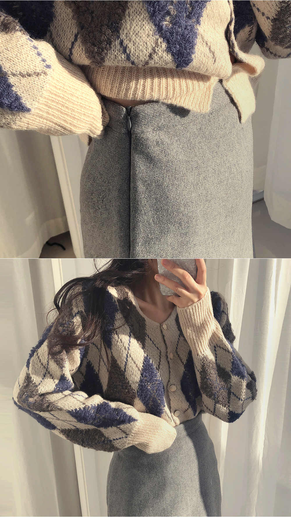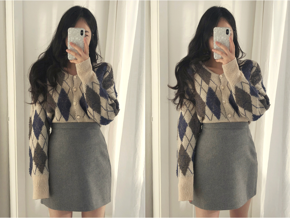 톡톡한 니트 소재의 아가일 가디건을 소개할게요~