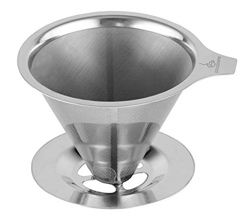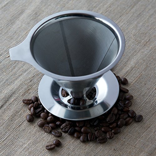 -. Feature : NO MORE PAPER: This pour over coffee maker is 100% reusable. It's the perfect solution for making pour over coffee without messy, disposable paper filters that absorb cacao oils and rob your coffee of its natural flavor. Our stainless steel coffee dripper does away with expensive paper filters, saving time and money. / BREW LIKE A BARISTA: A long-time traditional method of manual coffee brewing, this pour over coffee maker allows you to brew delicious coffee like the baristas at your favorite cafe. The dripper is durable and reusable and an extended lip on the base of the dripper keeps it secure on your mug while you brew. Makes 2 full cups, or about 4 coffee mugs, of the best tasting coffee. / FINE SLOW-DRIP MESH : This coffee dripper is made with fine reinforced steel mesh to be extra durable and drip at the perfect rate. The base will stay on forever and never break. The mesh and base are made from reinforced stainless steel built to last. / COOL TO THE TOUCH: The filter stays cool to the touch, allowing you to grab the handle without burning your fingers. Especially designed to be heat-resistant, keeping you safe and sound while brewing your coffee. / RINSE AND REUSE WITHIN SECONDS: Cleaning is a breeze! Rise the stainless steel coffee filter under warm running water and dry after use. What's more, the coffee maker is dishwasher safe! If you're not totally satisfied with our pour over coffee dripper, you'll get a 100% refund - NO QUESTIONS ASKED. So, click the "add to cart" button now and enjoy the smoother taste of your coffee today!