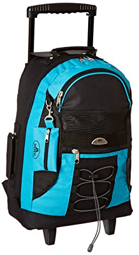 -. Binding : Apparel -. Brand : Everest -. Department : unisex-adult -. Feature : A medium backpack on wheels / -It can be used as a backpack or a suitcase / -Two-stage telescoping handle / -Tuck-away padded straps for using solely as a backpack / -Double handles for easy portability -. Label : Everest Lage -Child Vendor Code -. Manufacturer : Everest Lage -Child Vendor Code -. NumberOfItems : 1 -. PackageQuantity : 1 -. ProductGroup : Apparel -. ProductTypeName : LAGE -. Publisher : Everest Lage -Child Vendor Code -. Size : One Size -. Studio : Everest Lage -Child Vendor Code -. Title : Everest Wheeled Backpack