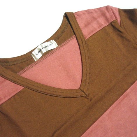 신품 같은 COMME des GARCONS 꼼 데 갸르송 1995 멀티 보더V넥T셔츠 (반소매 컷소우) 048630 【중고】
