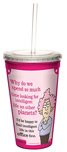 Tree-Free Greetings 16-Ounce Double-Walled Cool Cup with Reusable Straw, Aunty Acid Intelligent Life (CC98423)