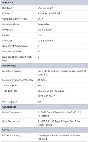 StarTech.com USB 3.1 Gen 2 (10Gbps) Dual-Bay Dock for 2.5"/3.5" SATA SSD/HDDs - Supports SATA I, II, III and UASP - Top-loading