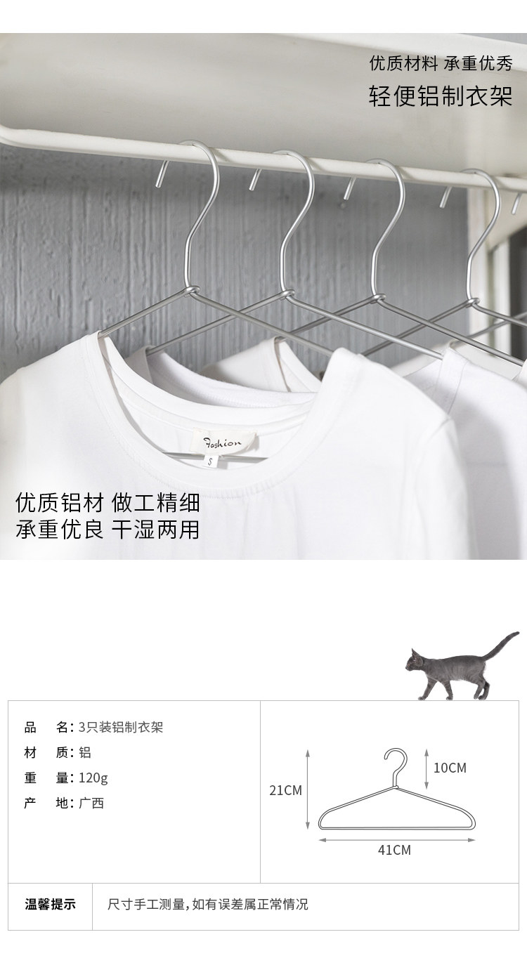 铝制洗涤用衣架3个装轻便无痕合金衣架简约晾晒衣裤架