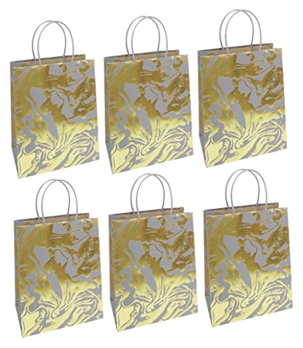 Bulk Buy: Lot - Gray & Gold Paper Gift Bags - 7.75" x 9.5" x 4.75" (6)