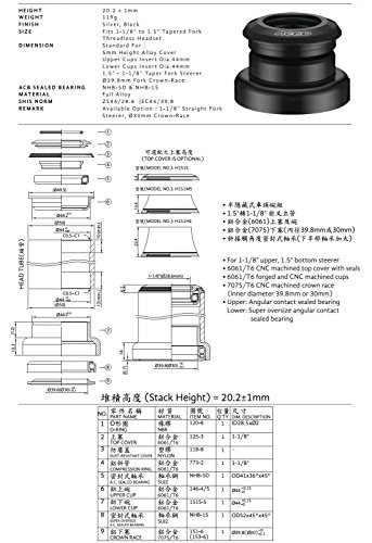 Studio : NECO Publisher : NECO Product Description Use for 1-1/8" Head Tube and 1-1/8" to 1.5" Tapered Fork Headtube ID.: 44mm Crown Race: 39.8mm Stack Height: 20.2 ± 1mm Size: Fits 1-1/8" Head Tube and 1-1/8" to 1.5" Tapered Fork Dimension: Standard For : 5mm Height Alloy Cover Upper Cups Insert Dia.44mm Lower Cups Insert Dia.44mm 1.5" - 1-1/8" Tapered Fork Steerer Ø39.8mm Fork Crown-Race ACB SEALED BEARING : NHB-5D NHB-15 Material: Full Annoy Top Cover Height: 5mm (15mm alloy top cover is optional, please be free to let us know if preferred the 15mm top cover) Crown Race: 39.8mm (30mm crown race is optional,please be free to let us know if preferred the 30mm crown race) SHIS NORM: ZS44/28.6 |EC44/39.8