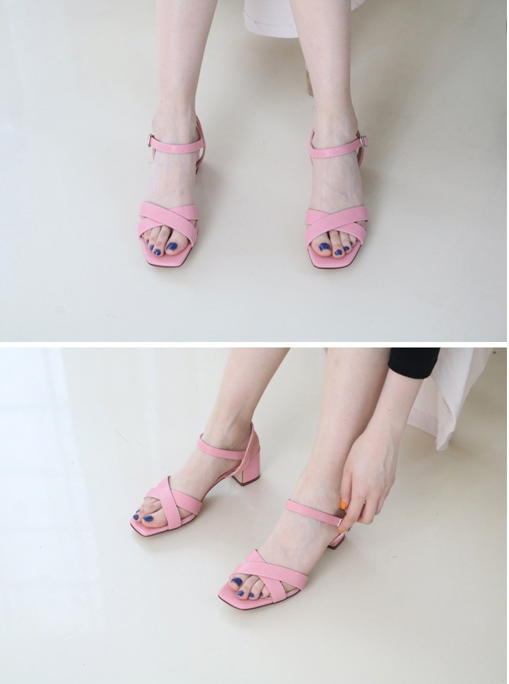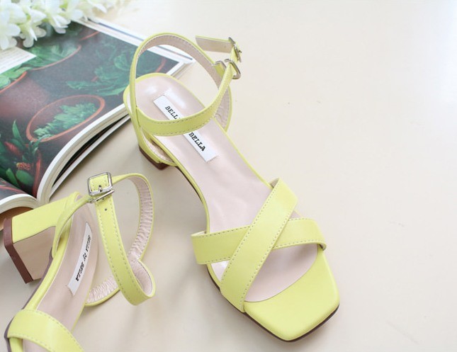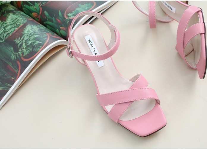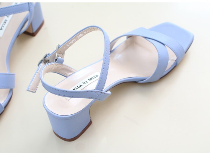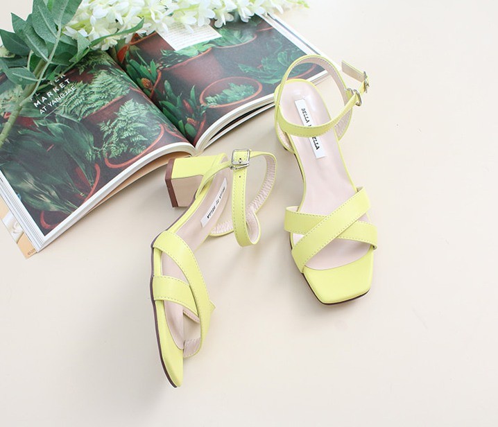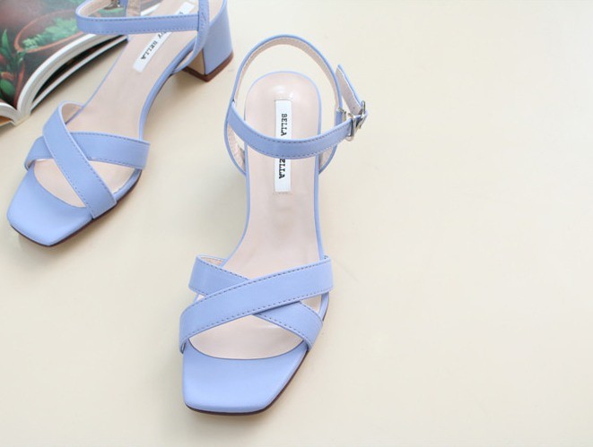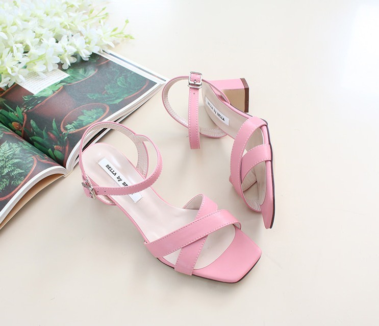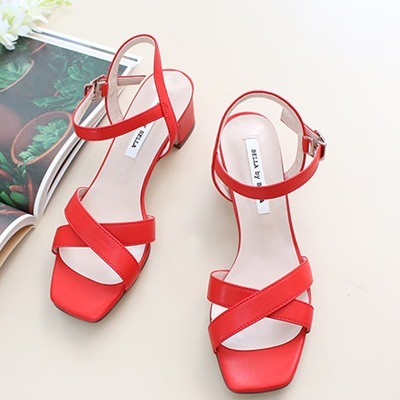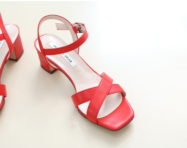 商品名:サンダル レディース 太ヒール チャンキーヒール アンクルストラップ 本革 2018 夏 ファッション 靴 婦人靴