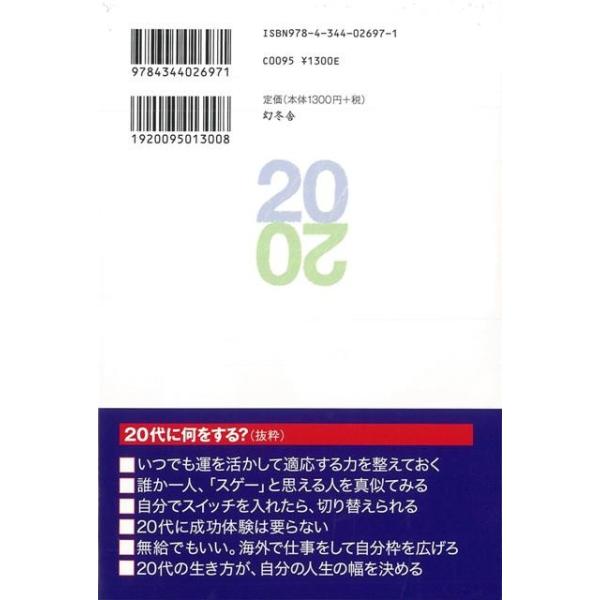 【商品基本情報】 商品名称:20代に何をする?-メンター的起業家に訊く | |
