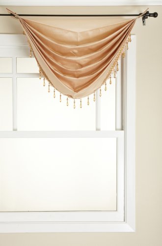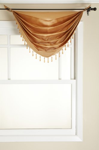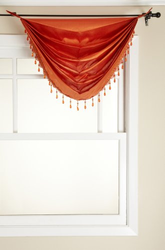 Stylemaster Tribeca Faux Silk Grommet Waterfall Valance with Beaded Trim, Saffron, 36 by 37-Inch B008F6F88K