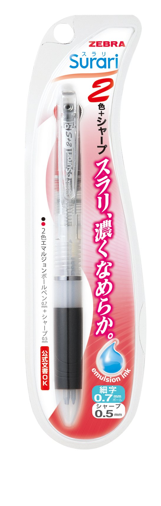 Zebra Multi Function Surari Black/Red Ink 0.5mm Ballpoint Pen 0.5mm Mechanical Pencil Clear Body (B2SA11-C)