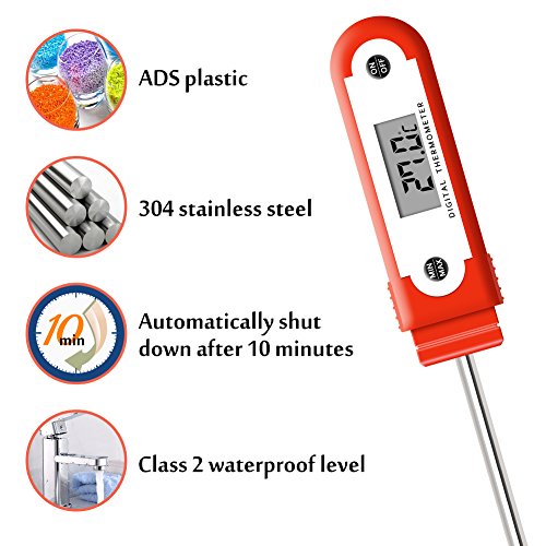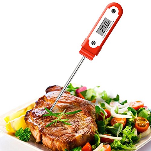 Studio : TNSO Publisher : TNSO Product Description "Cook With Confidence And Enjoy Tastier Meals Every Time We all know the sinking feeling when you cut open a delicious looking steak, hot off the grill, and realise that you've overdone it. Instead of a enjoying a tender and juicy piece of meat you end up chewing on tire rubber. Or even worse, you're finally carving up the Thanksgiving turkey and discover to your horror that its still raw! The crazy thing is, all you need to prevent these situations from ever happening again is a good quality digital meat thermometer. Good news - you have just found one! Before Long You Won¡?t Know How You Used To Cook Without It Having friend over for a BBQ, hosting a party, o rustling up a meal for yourself? Whatever you are cooking, it is just so much easier when you have a top quality, reliable thermometer at your disposal. The Alpha Grillers Instant Read Thermometer is fast! No more burning hands as you wait for the temperature to settle over a hot grill. It is also extremely accurate so you can really trust the reading it gives you. On top of that we have designed the chart to be extra large and clear so you can easily read the temperature, even in bright sun. Full Specs: Specifications 1. Range: -58¡aF ~ 572¡aF (-50¡aC ~ 300¡aC) 2. Resolution: 0.1¡aC or 0.1¡aF 3. LCD display 4. Power: 1XCR2032 3.0v 5.10 minutes Auto shut off - Uses: BBQ, Oven, Smoker, Candy, Meat, Food, Liquid, Milk Warning: 1. Do not put the thermometer directly in the oven while cooking. 2. Do not touch the hot probe by bare hand. 3. Use wet cloth to wipe the thermometer while cleaning rather than immerse it in water completely. 4. Probe disinfection: Put the metal probe into boiling water for one minute to disinfect. 5. Power off and put it away from children after use. " 0