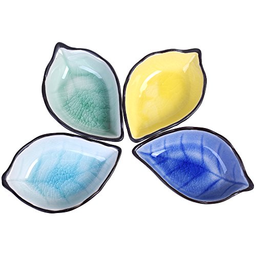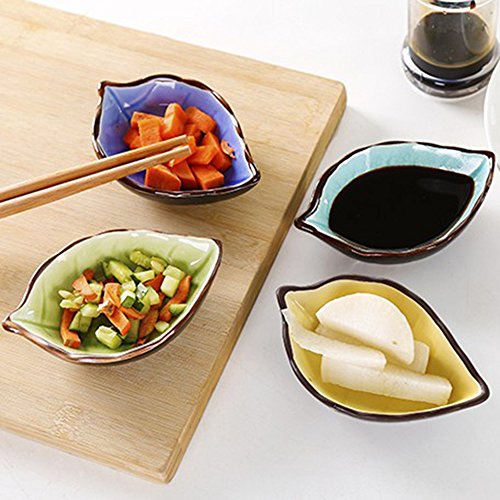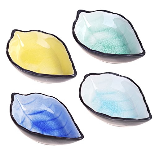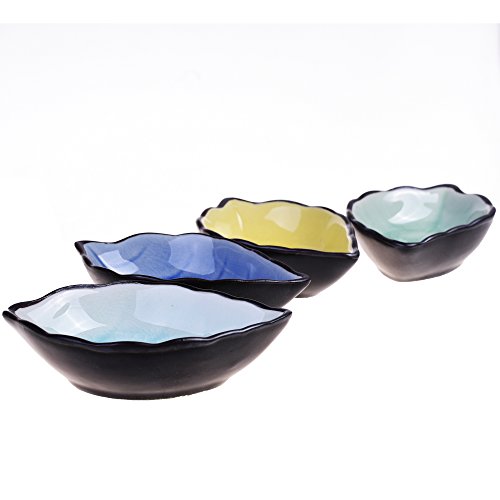 Kloud City Pack of 4 Assorted Color Ceramic Sauce Dishes Plates Serving Saucers Bowl For Sushi Appetizer Japanese Style Dinnerware Set Snack