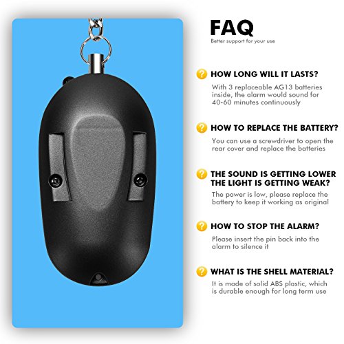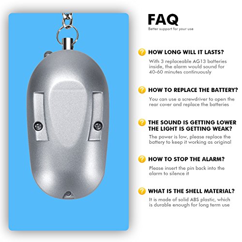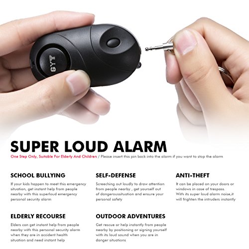 Studio : GYY Publisher : GYY Binding : Misc. Product Description Specification: VOL:130dB Batteries: 3*LR44 (Included) Item Size: 2.96 * 1.58 * 0.80 inch Package Size: 3.16 * 2.18 * 1.20 inch GYY Personal Alarm -- Self Defense Electronic Device -- 24 Hours Close Protection ! GYY Emergency Alarm is very useful for everybody, especially for women, girls, kids, night walkers and adventurers who is in dangerous situations. Its super loud siren sound would deter the attackers or intruders instantly and force them to give up on attacking. Quickly draw enough attention of people in a wide area for efficient help. Key Features: ¡u Mini led flashlight is quite useful for finding a keyhole in the dark or dark area illumination. ¡u Wide versatility: school bullying, self-defense, anti-theft, elderly rescue and outdoor adventures. ¡u Great handbag or keychain accessories with its small and handy shape, looks like a backpack or a key ring decoration. ¡u The metal pin of ripcord is never too loose, which is good as you might not inadvertently set it off unintentionally. ¡u Easy replace the batteries by opening the back cover with a screw driver and always keep it in a dry and cool place for long term use. ¡u Always backed by our No Hassle Return and 30-Day Money Back Guarantee. Please feel free to contact us anytime. GYY Emergency Personal Alarm is a MUST HAVE for everyday and everywhere security or personal safety! Warm Tips: 1.The siren sound of our alarm is very loud, please do not put it by your ears. 2.Please replace the batteries immediately when the sound is getting weak. 3.Please avoid our alarm being handled by infants or children under 7 yrs old. 0