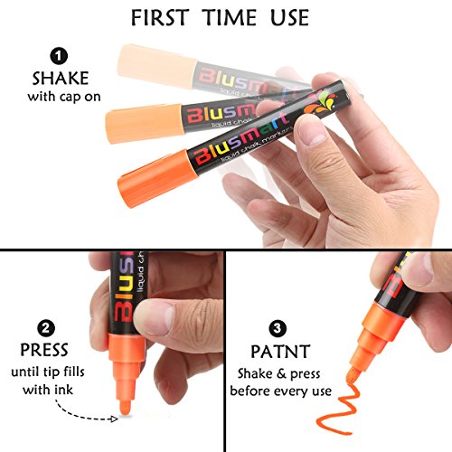 - Suitable for - Blusmart liquid chalk markers can be used on all NON-POROUS surfaces, such as Menu Boards, Chalkboard Labels, Chalkboard Paper, Bistro Boards, House Windows, Car Windows, Glossy Boards, Mirrors, Plastic, Metal and more. But some surface has tiny holes that will absorb water, which is not suitable for using this product.